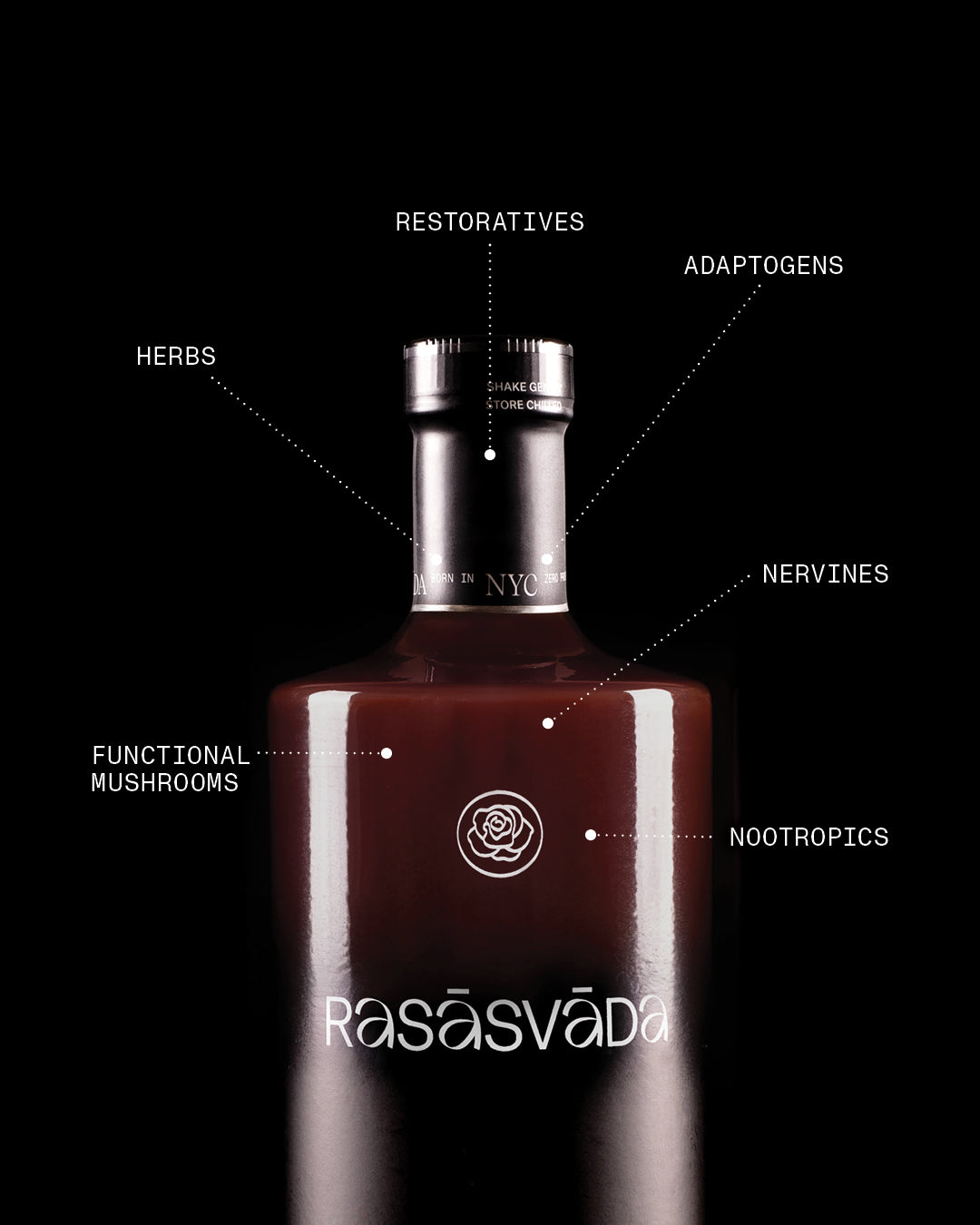 Rasāsvāda uses nootropic natural herbs and whole foods to enhance both flavor and functionality of Ruby Artemisia, Rose Bergamot, and Black Ginger spirits.