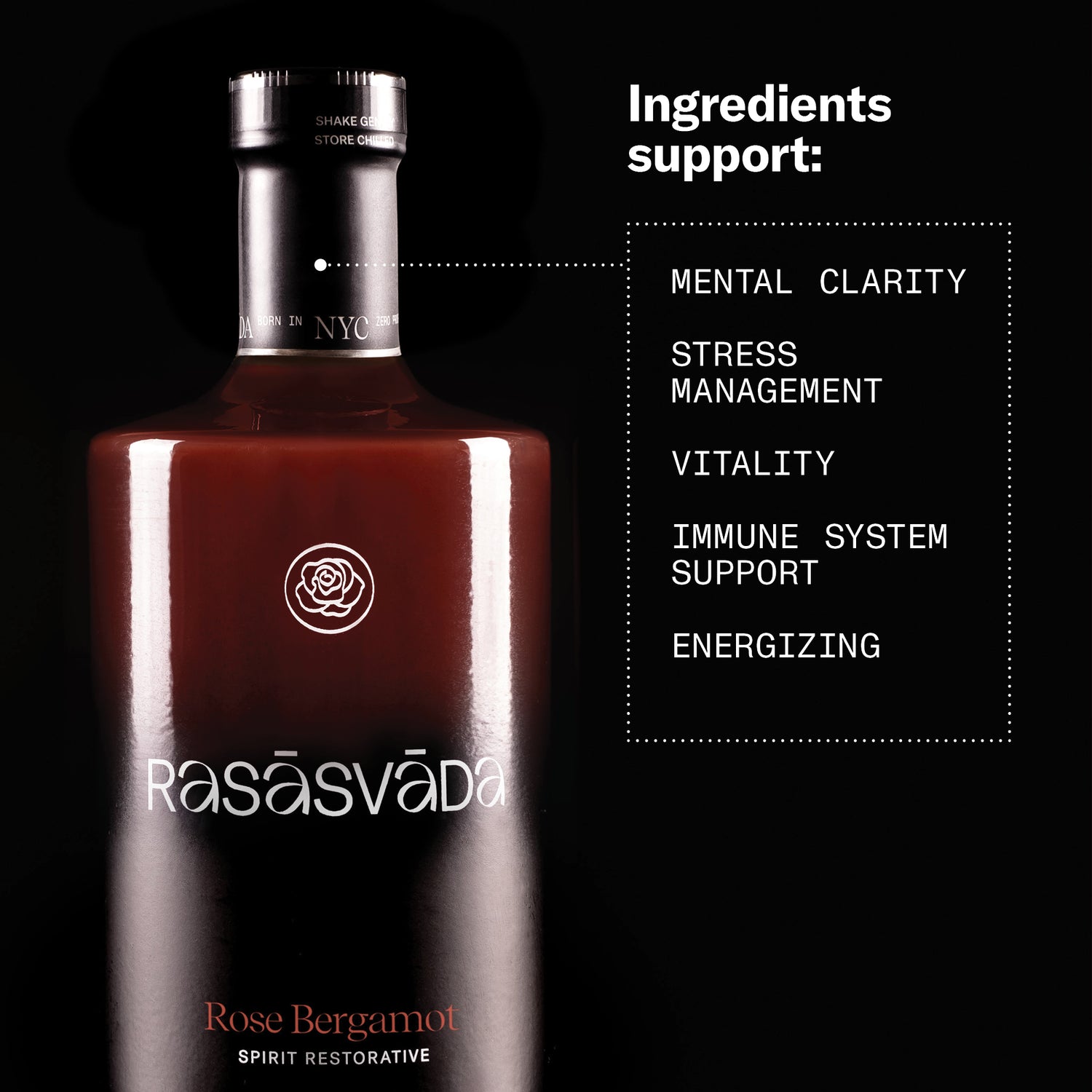 In Rose Bergamot, Schisandra berries compliment ginseng, essential oils, and vitamin C – all vetted ingredients with extensive knowledge in the medical community about their efficacy in stress relief and immune system support, to create a functional spirit designed to support mental clarity, stress resilience, and vitality.
