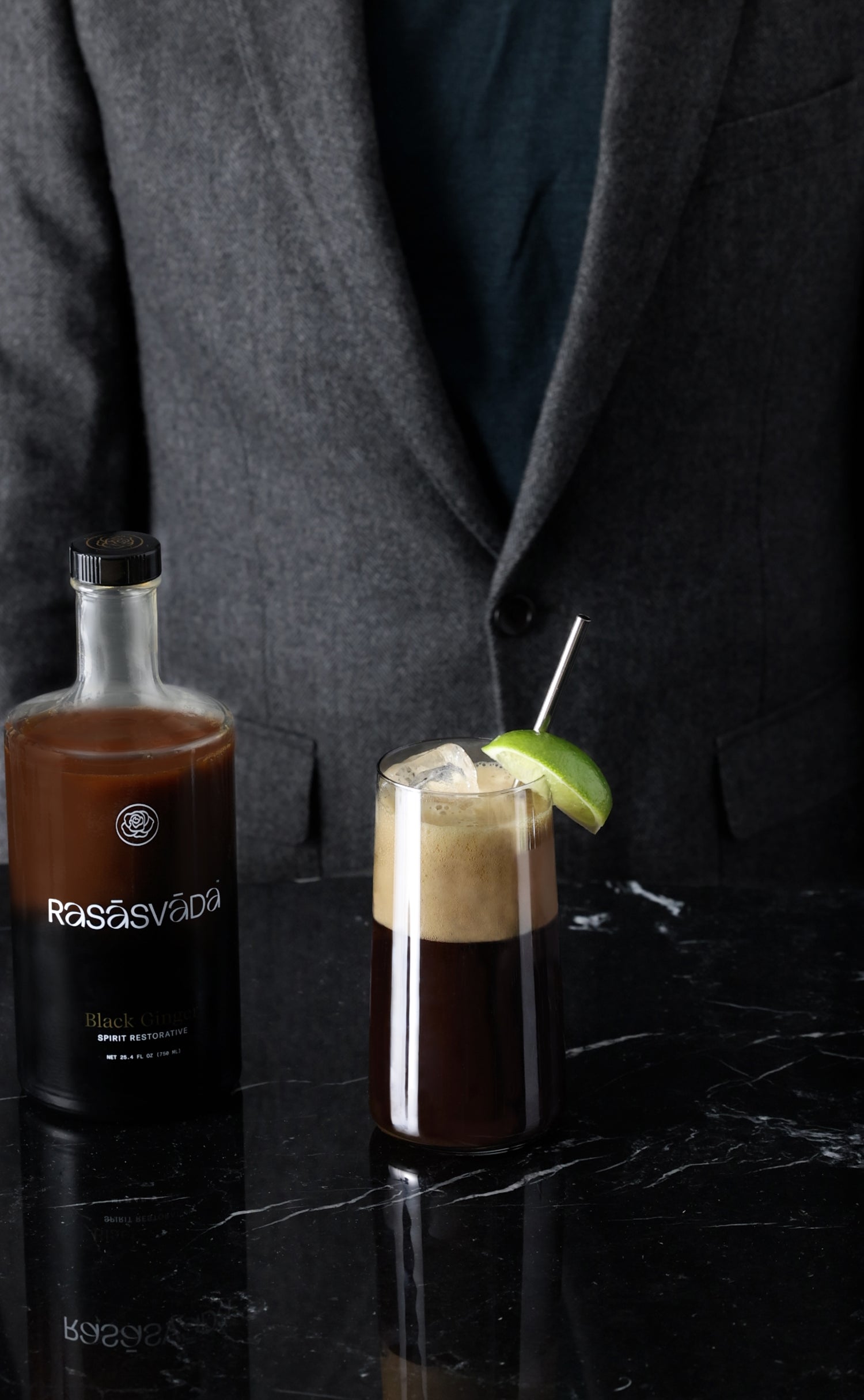 Serve: Add ice to a cocktail glass. Add Rasasvada Black Ginger, top with chilled cola.