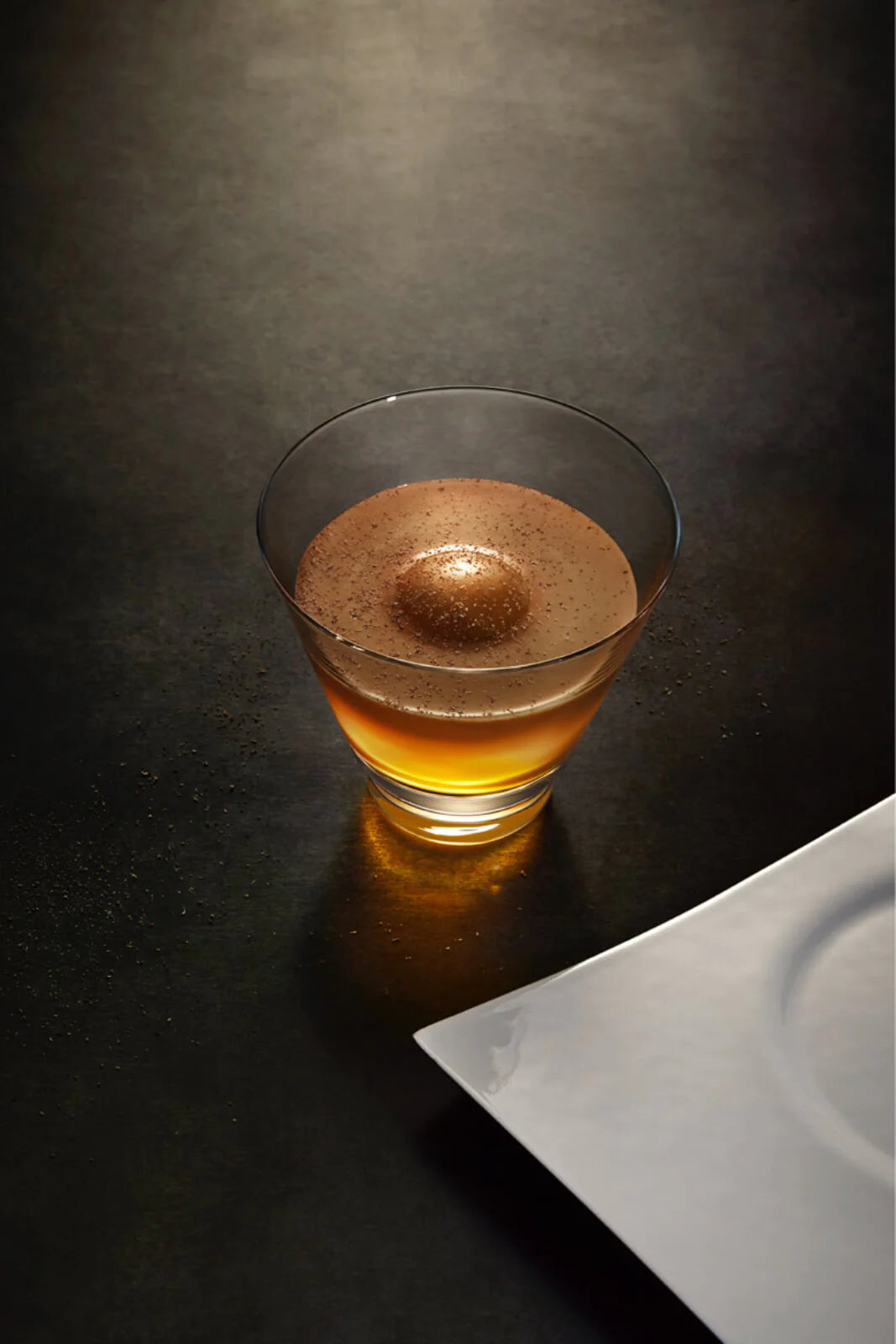 SERVE: In a cocktail shaker, add all ingredients, plus ice, and shake hard for 20 seconds. Double strain into a Collins glass over fresh ice, then gently micro-plane dried nutmeg over the top—it should appear as a light dusting.